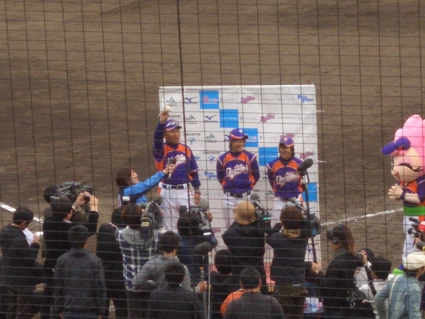 試合後は募金活動に観客席の掃除にと選手は少ない人数で大忙しでした。いろいろ事情ですぐには難しいでしょうがもう少しチームが増えて対戦に変化があるともっと楽しみでマスコミにも取り上げてもらえるのにねぇ。