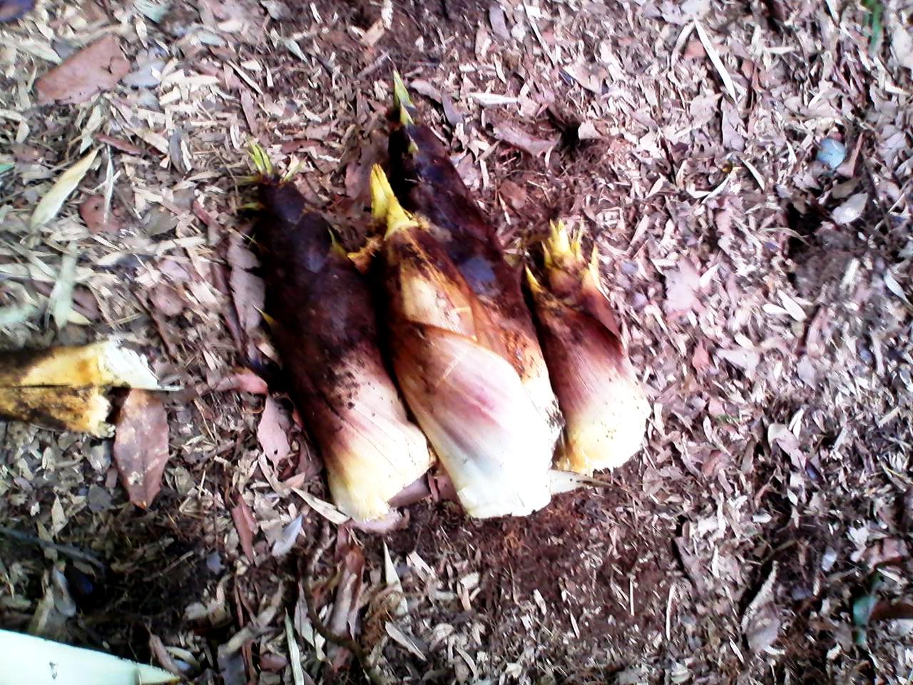 そのうち力任せにグサッ!おお〜いい感触で筍が持ち上がって来ました。なかなかいい感じです。