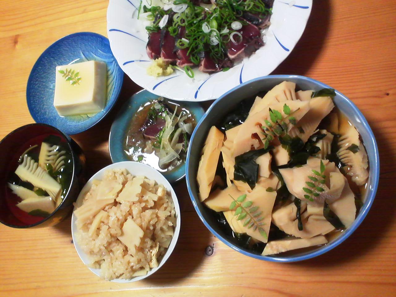 こんばんは定番の炊き込みと若竹煮、お吸い物でしたが自分で掘ったものはやっぱり格別でとても美味しく戴きました。
