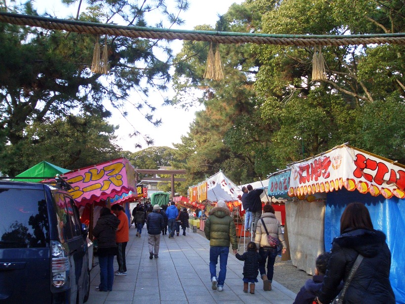 10日の朝6時にスタートする福男選びの受付や走路の両側のお店も着々と準備が進んでいました。