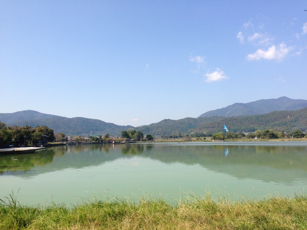 お昼ごはんは広沢の池のほとりに腰を下ろして北嵯峨の景色を眺めながらでコンビニの弁当も格別です。