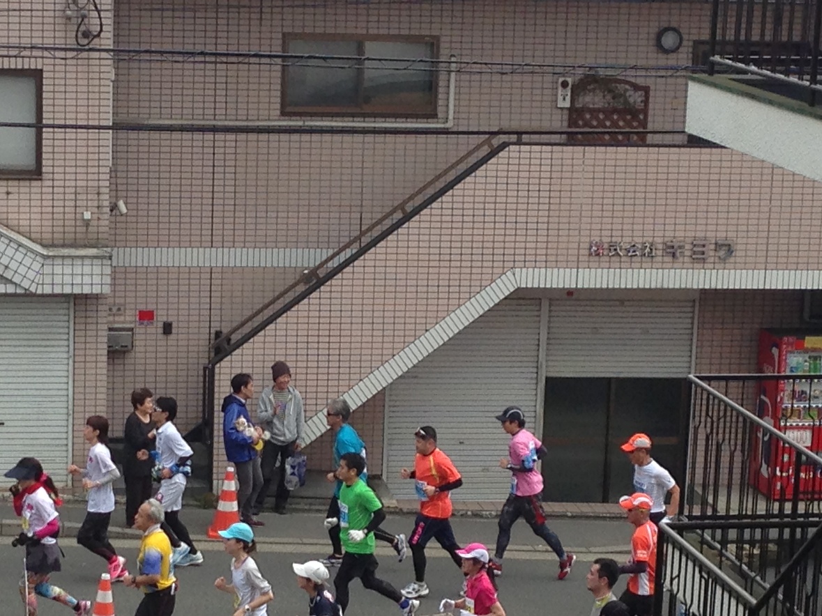 最近はPM2.5に敏感で今日も多い予報なのでマスクを欠かせないのですがさすがにランナーに失礼なので外して応援します(o^∀^)