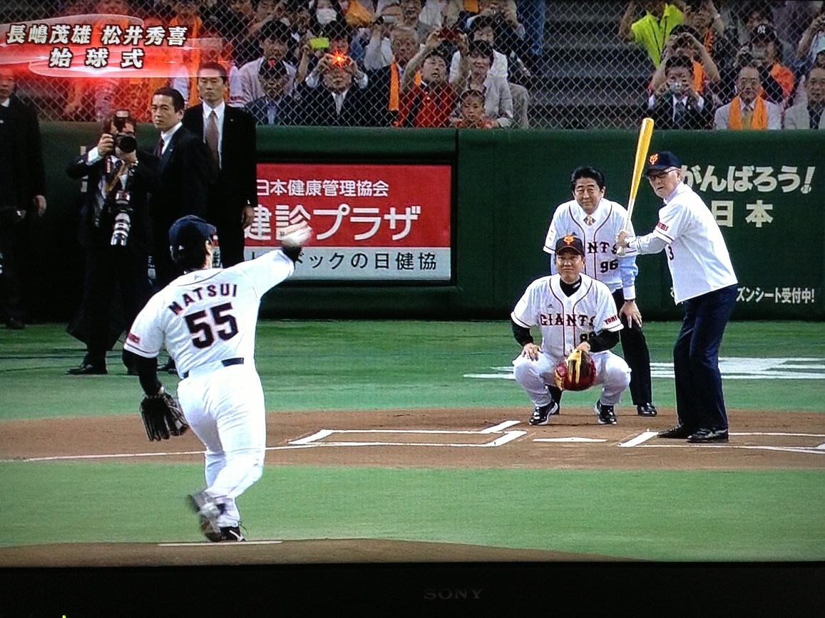 大ヒーローであるである長嶋さんが郷里の大スター松井君と一緒に国民栄誉賞を受賞されるわけでその後の始球式には安倍総理と原監督が参加されるという情報でしたから、朝からそわそわしながら待っていました。