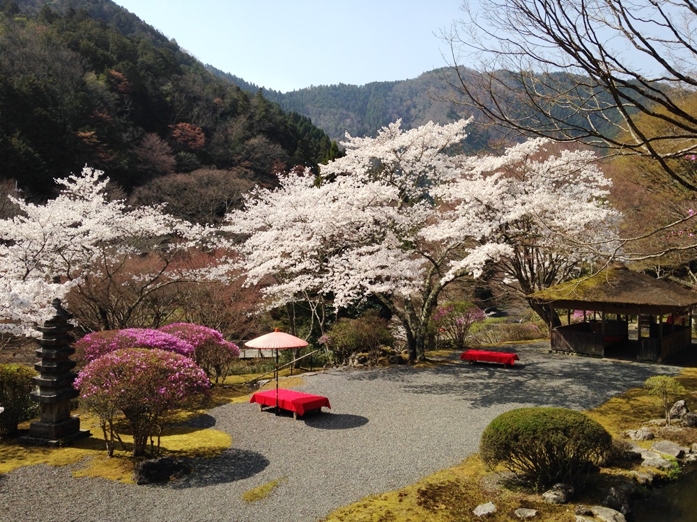 東屋が園内ところどころにあってゆっくりと腰を下ろして散り始めた花びらを眺めながらとても優雅なひと時を過してきました。