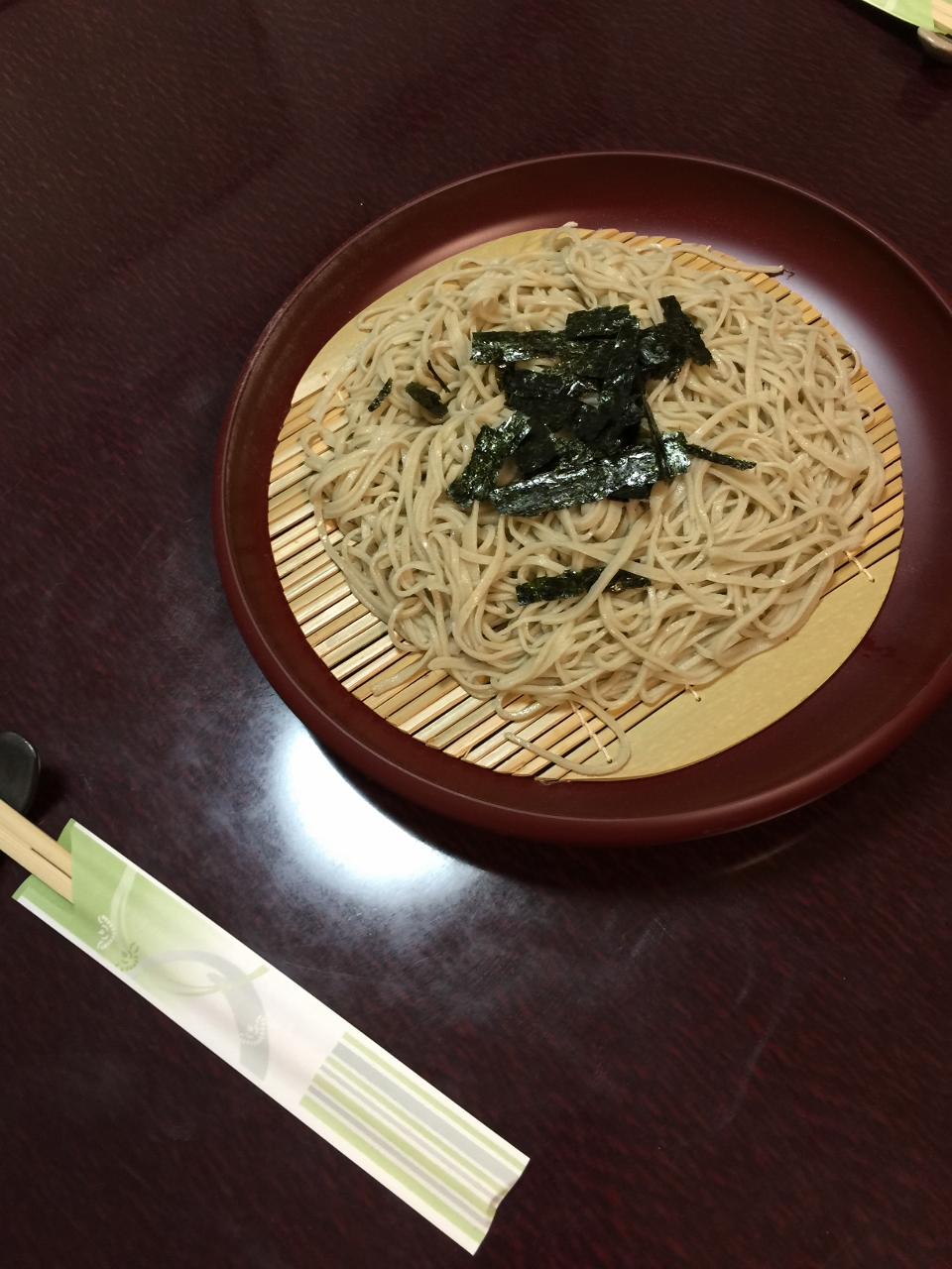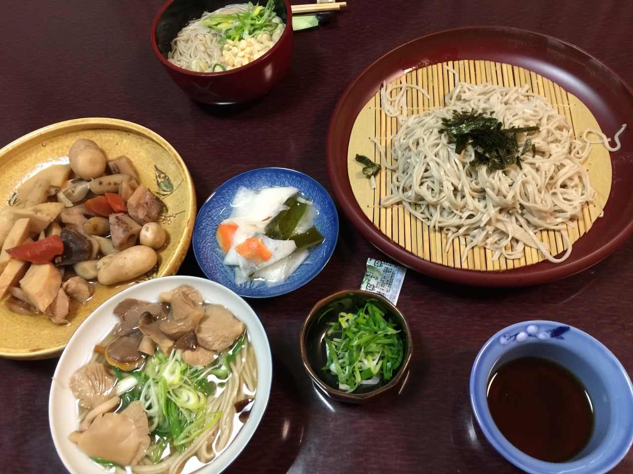 つなぎと水も加減して気持ち固めに、しかも素早く湯がいたつもりでしたがいつになく良く出来たのでつい冷たい方にも欲が出てしまい、写真撮影もあり〜ので伸びてしまった。