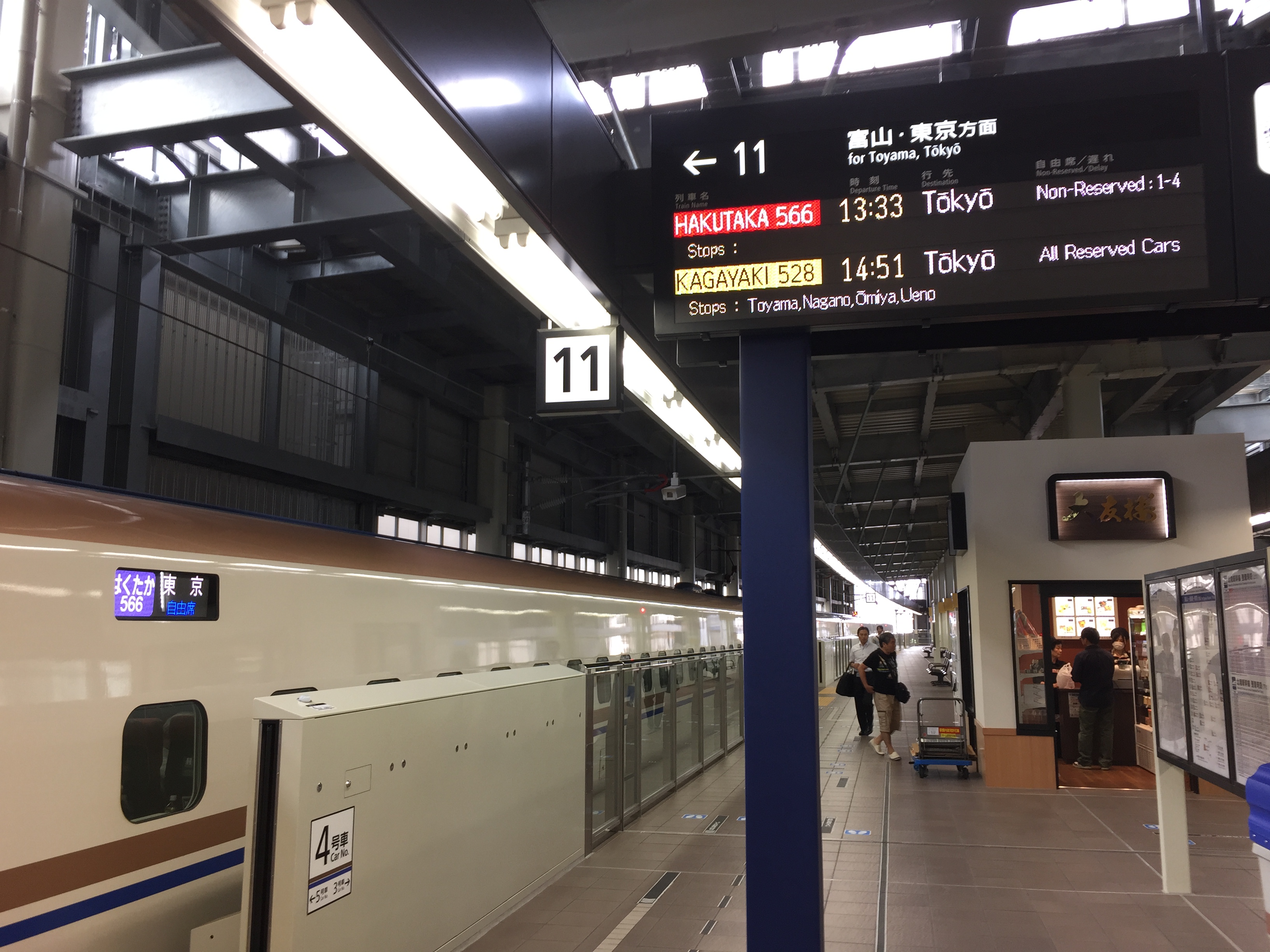 北陸新幹線にも金沢から新高岡間わずか14分ですが自由席は無料なので初体験、ミーハー出来るし・・・・