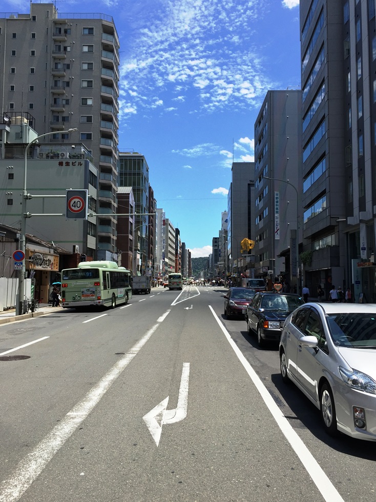西洞院通りを北上し四条通に出て八坂さんの方向を眺めるとなるほどと思ったことが・・・