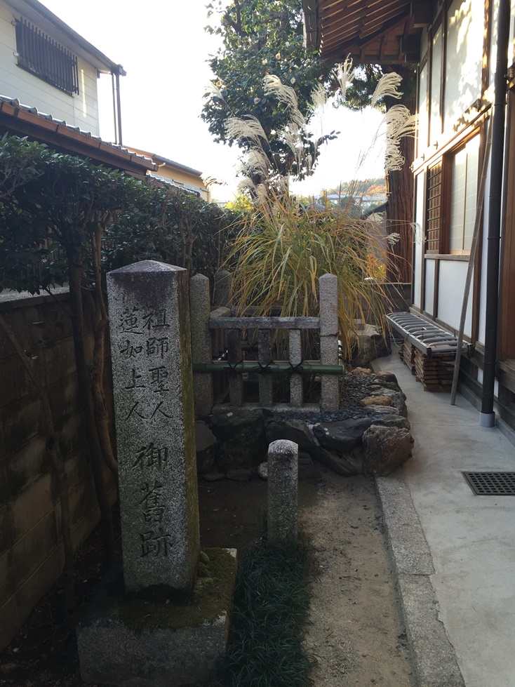 本堂にはこの「帰命尽十方無碍光如来」の名号が掛けられ、中庭に親鸞聖人ゆかりの「すすき塚」があると京都新聞で知って今回それを訪ねたのですがなかなか探せません。