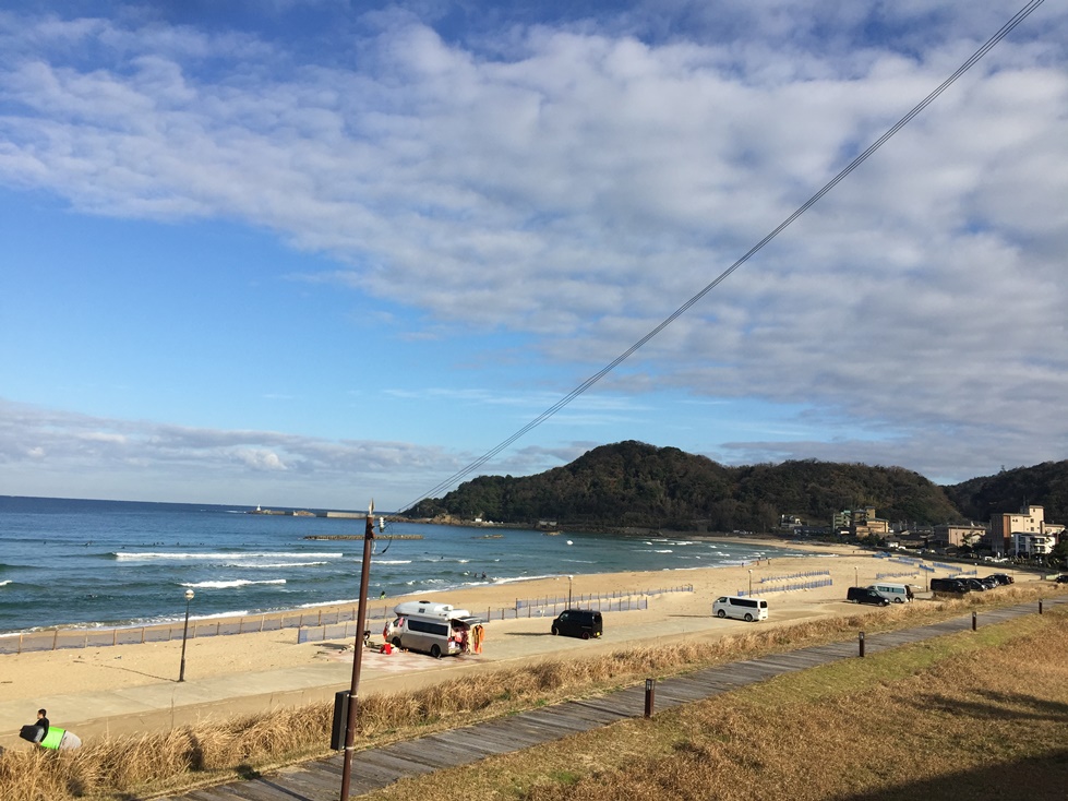 翌朝立ち寄った海岸(夕日の路)では大勢のサーファーが楽しんでおられました。