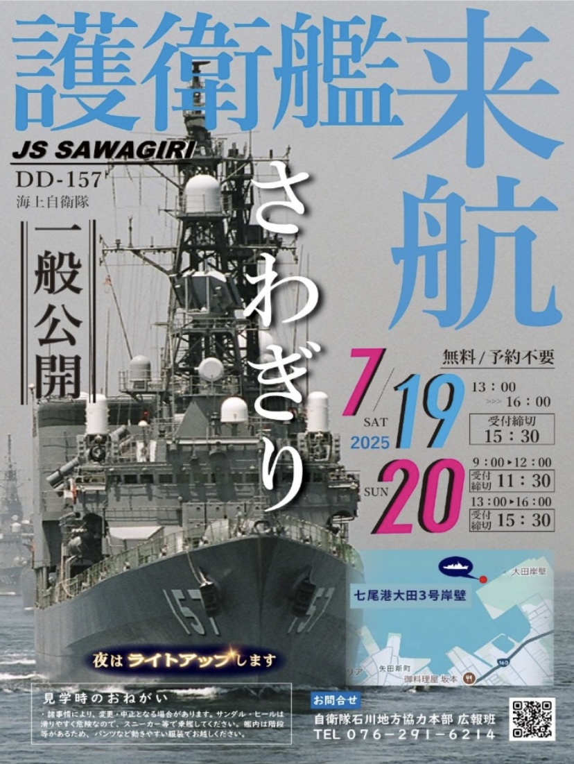 午前中は能登半島地震の際にも救援物資の輸送など活躍された海上自衛隊護衛艦「さわぎり」一般公開に太田埠頭へ